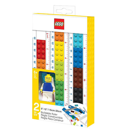 La LEGO® Stationery est construite à partir de 28 blocs de construction colorées et de chaque côté elle est blanche avec respectivement des centimètres et des pouces. La règle peut être intégrée dans une règle courte de 15 centimètres/6 pouces ou dans une règle longue de 30 centimètres/12 pouces. La règle peut également être décorée avec vos propres blocs de construction, et une figurine avec un pantalon blanc et un haut bleu est également incluse.