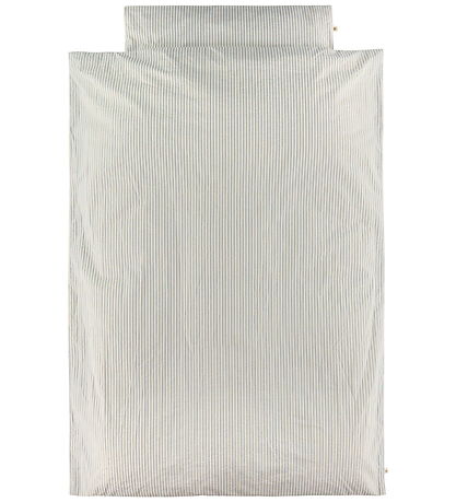 Magnifique literie de literie Konges Sløjd blanc cassé à fines a rayures bleues. Konges Sløjd se compose d'une taie d' Literie à fermeture rabattable et d'une housse de couette zippée. Confectionnée en coton biologique doux, elle est livrée dans un sac de rangement smart.
