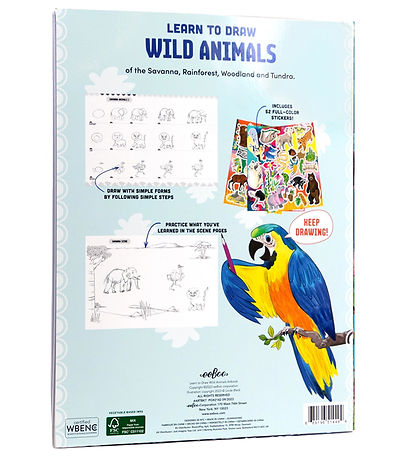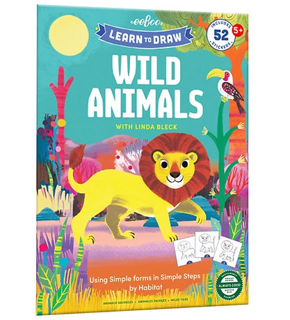Le livre Eeboo enseigne une multitude de techniques et de concepts pour dessiner d'adorables animaux sauvages. Livre explique par exemple comment dessiner un Løve en étapes faciles à suivre, et bien plus encore pour les passionnés de dessin. À la fin du livre se trouve une grande feuille avec 52 autocollants différents. Il est recommandé d' Have un carnet séparé ou similaire pour plus d'espace pour s'entraîner.