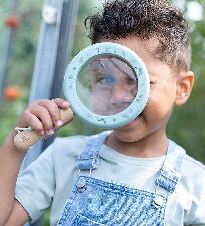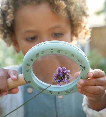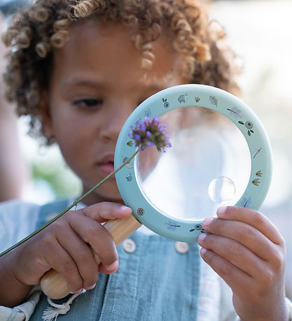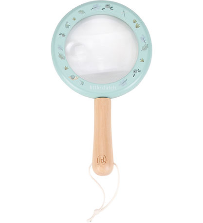 Passionnante Little Dutch en bois turquoise avec un imprimé de petites feuilles et d'insectes. La loupe a un manche en bois, elle est donc facile à utiliser. La loupe encourage la curiosité et l'exploration tandis que les enfants découvrent la nature de manière ludique.