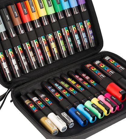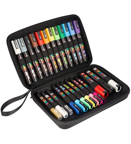 Adorable coffret Posca composé de 24 marqueurs magiques de 17 couleurs différentes et de 4 tailles de pointu différentes.