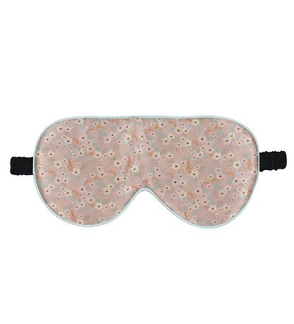 Masque de nuit Sweet Fan Palm rose pâle avec un imprimé complet de fleurs blanc, bleu et orange.