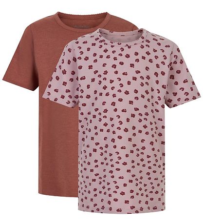 Jolis t-shirts Minymo vendus par 2 Pack dont un en rose foncé et un violet à a rayures imprimé floral.