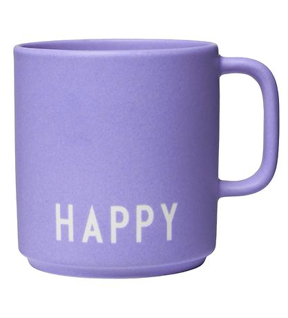 Tasse à Design Letters mignon en violet clair avec le mot «Happy » en blanc.