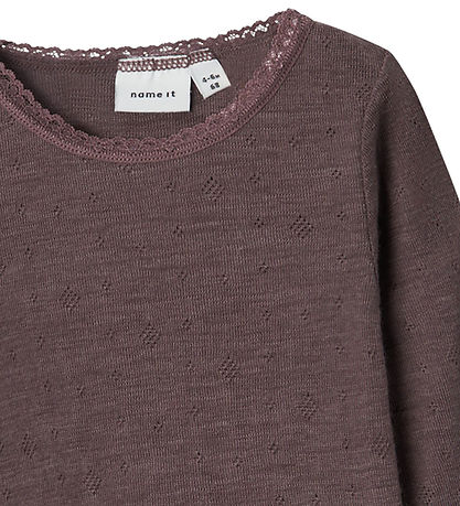 Le justaucorps Name It a des manches longues et une encolure tour avec des bords en dentelle décorative. Le Justaucorps s'ouvre entre les jambes grâce à À boutons poussoirs pratiques et est confectionné dans une qualité de laine légère et délicieuse.