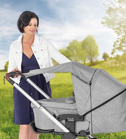 pare-soleil Reer pratique pour la poussette en gris.
