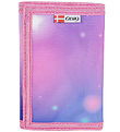 Élégant portefeuille By Stær d'un vieux bleu orné de petits coeurs à paillettes aux tons verts et bleus sur un côté. By Stær s'ouvre par une fermeture éclair et comprend deux grands Rum, quatre emplacements pour cartes et une petite poche zippée au milieu.