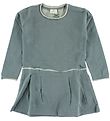 La robe En Fant possède des bretelles fines avec élastiques qui croix dans le dos. La Robe a une encolure tour. La Robe comporte deux coutures qui forment une jupe de bonne largeur et de fins plis. La Robe a une fine couche intérieure blanche et est confectionnée dans un coton léger et étroitement tissé.