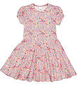 La Robe a des manches courtes et petites pouf et a une forme ballon avec beaucoup de jeu dans la robe.