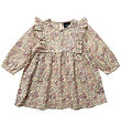 Belle robe Sofie Schnoor à manches longues de couleur beige à imprimé léopard. La Robe a une jupe douce et légère et est décorée d'un détail argenté sur la poitrine.