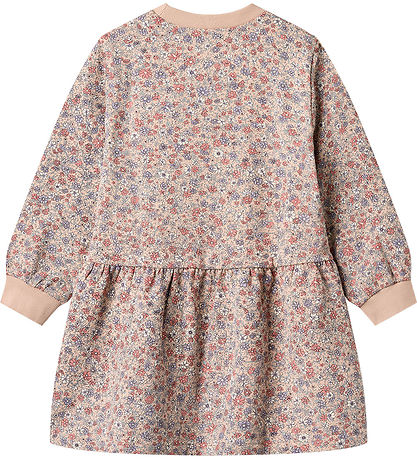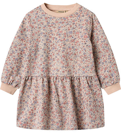 Élégante robe Wheat ornée d'un délicat imprimé floral aux tons neutres. Robe possède des manches longues et une encolure tour bordée de bords côtelés. Sa jupe robe confère une allure classique. Sa texture Wheat procure une sensation de confort.