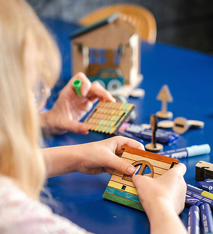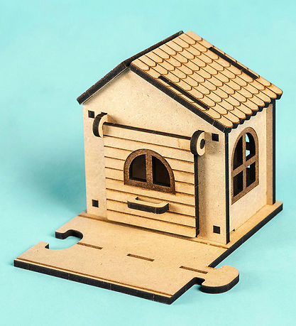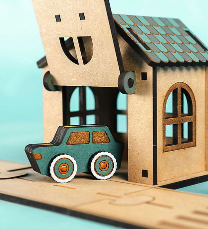Avec le ensemble Crateit vous pouvez construire votre propre garage. Le bois du ensemble est incolore et vous devez donc le colorer vous-même. Il peut être coloré avec tous types de marqueurs de couleur, de peinture ou de crayons de couleur.