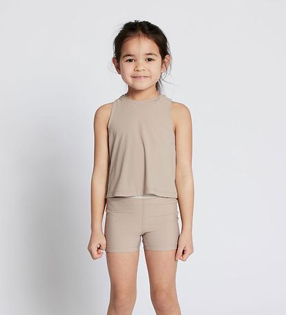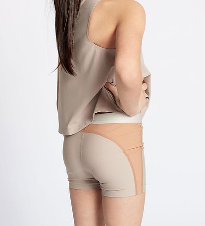 Joli shorts de sport Rethinkit en beige, et sur les côtés ils sont beige foncé. Dans la vie, ils ont un bord de couleur crème. Le Shorts de sport est confectionné dans une qualité sportive.