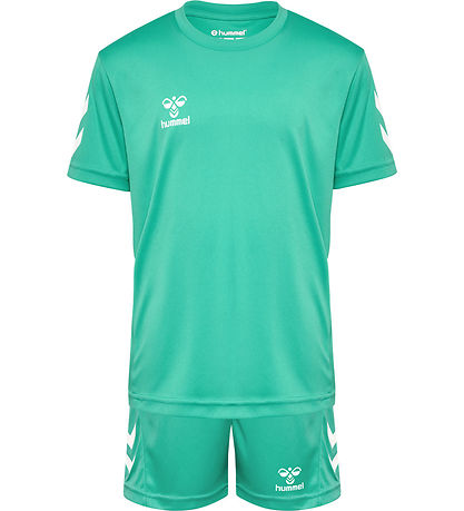 survêtement Fresh Hummel à manches courtes de couleur vert clair avec logo et détails fins. Ensemble comprend un short qui complète parfaitement le look des enfants actifs qui recherchent le confort et le style de Hummel.