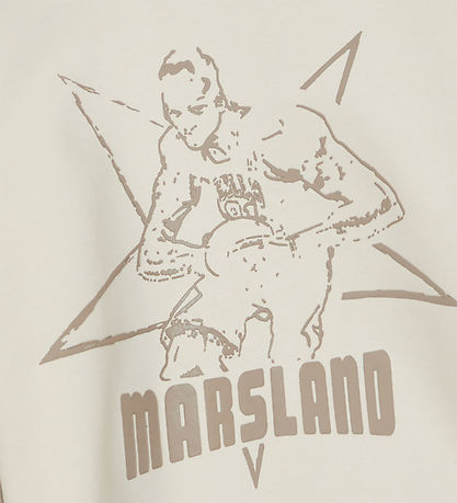 Sweat-shirt Grunt élégant dans une teinte beige clair avec un grand imprimé logo "MARSLAND" dans des tons marron sur le devant. Au dos se trouve un imprimé sympa d'un sportif vedette et le texte « MARSLAND V ». Les manches longues du sweat-shirt offrent une silhouette agréable et moderne, parfaite pour diverses occasions.