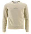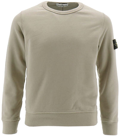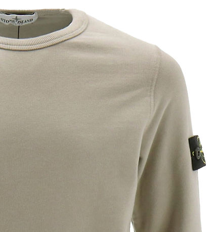 Sweat-shirt Smart Stone Island de marron clair, et en haut de la manche gauche, le logo emblématique est Fast avec des boutons.