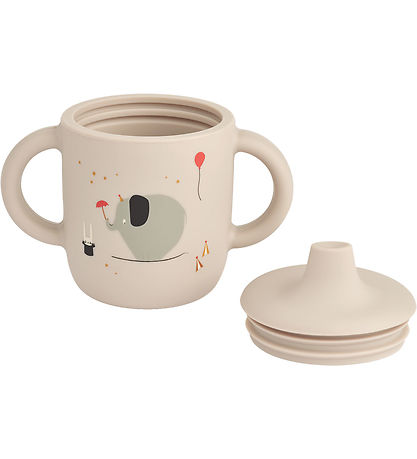 La tasse Liewood est dotée de deux poignées pratiques et d'un goulotte amovible. Il y a un petit trou d'aération dans le couvercle afin qu'il n'y ait pas de vide au fond de la tasse.