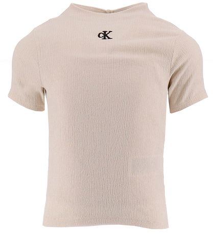 Joli top Calvin Klein crème avec "cK" brodé en noir sur le devant. Le dessus a une belle structure crêpe.