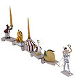 Train d'anniversaire amusant Konges Sløjd avec une ballerine qui marche avec des champignons, une licorne, des poires et un paon.