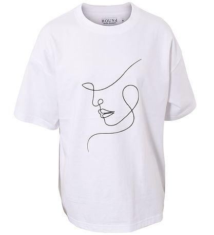Magnifique t-shirt Hound de couleur blanche, avec un joli imprimé noir sur le devant représentant un visage.