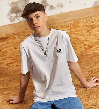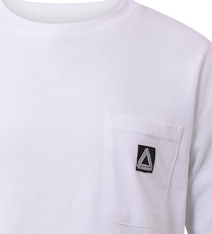 T-shirt Nice Hound de couleur blanche de couleur unie avec une petite application noire sur la poitrine gauche.