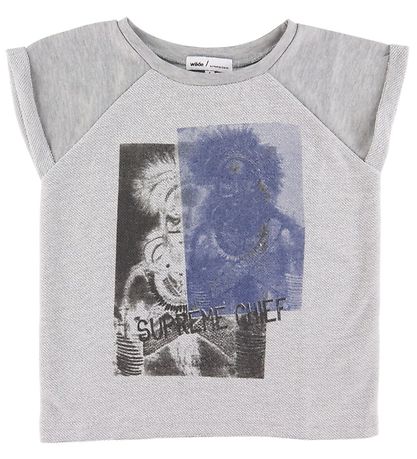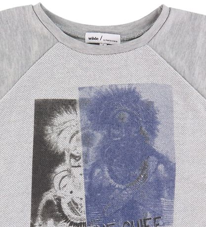 Joli t-shirt Hust and Claire en qualité sweat brossé en gris chiné avec imprimé devant en noir et bleu.