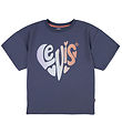 T-shirt Levis Smart d'un magnifique bleu. Au dos, un grand texte imprimé en blanc et noir. Ce T-shirt Levis présente une encolure tour et des manches courtes pour une coupe classique.