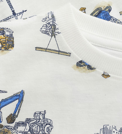 Magnifique t-shirt Minymo à manches courtes dans une teinte blanche avec un imprimé intégral passionnant et coloré d'engins de chantier et de grues. Le T-shirt est parfait pour jouer et a un style décontracté qui le rend idéal pour les activités quotidiennes.