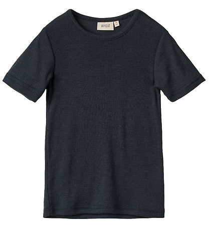 Le sous-pull Wheat a une coupe classique avec des manches courtes et une encolure tour avec un bord-côte étroit. Le T-shirt est dans une qualité de laine agréable et extensible.