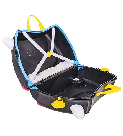 La Trunki est dotée d'un design à ride et d'une longue sangle amovible, ce qui vous permet de tirer l'enfant ou de le laisser conduire seul à travers les longues distances à l'aéroport. Deux horn à l'avant permettent à l'enfant de Fast. La valise comprend un grand Rum avec sangles élastiques et une petite poche pour ranger ses affaires. Elle se ferme grâce à un système de clic smart et dispose d'une fonction de verrouillage. Des sangles pratiques sont également présentes sur le dessus pour faciliter le transport. La valise est dotée de bords en caoutchouc pour éviter les pincements de doigts.