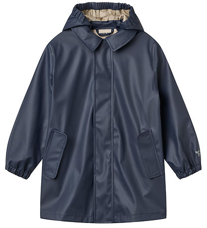 veste imperméable Fine Wheat en PU de couleur bleu marine de couleur unie.