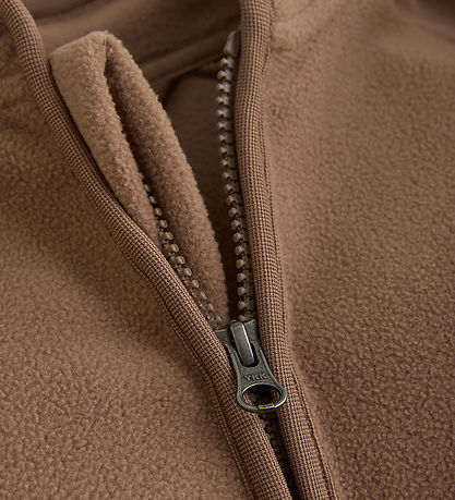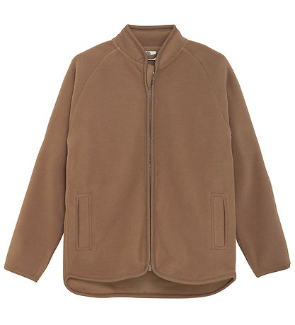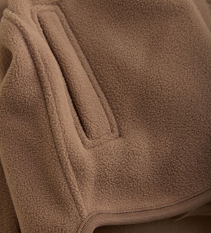 En Fant a un col mi-haut et des manches longues. Il y a des bords côtelés étroits dans toutes les ouvertures. La veste polaire s'ouvre sur le devant à l'aide d'un zip avec protège-menton. Sur le devant il y a deux poches ouvertes.