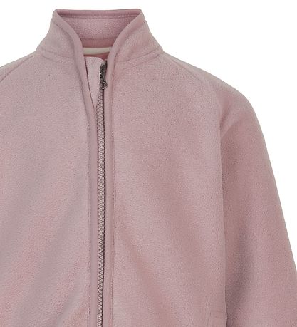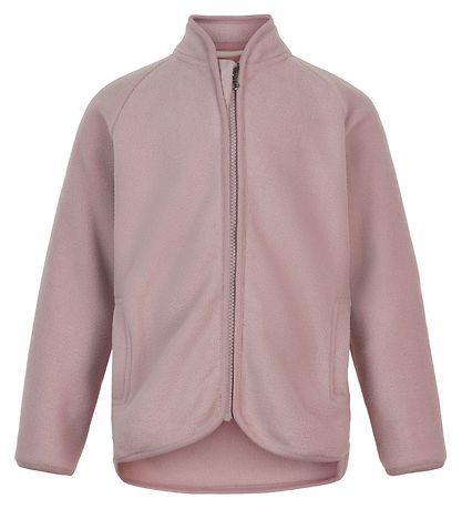En Fant a un col mi-haut et des manches longues. Il y a des bords côtelés étroits dans toutes les ouvertures. La veste polaire s'ouvre sur le devant à l'aide d'un zip avec protège-menton. Sur le devant il y a deux poches ouvertes.