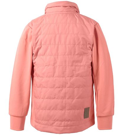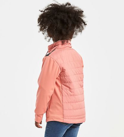 Délicieuse veste softshell Didriksons rose corail avec épaulettes noir. La veste softshell est un hybride entre softshell et thermique. Le corps de la veste est matelassé et doté de coutures horizontales comme une veste thermique, tandis que les manches sont en softshell classique.