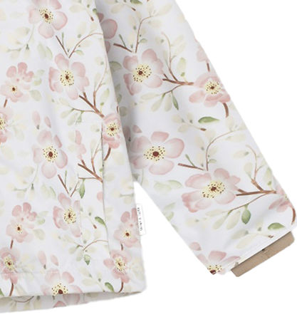 Veste d'été Smart Mini A Ture blanche avec un imprimé floral intégral dans les tons rose, vert, marron et jaune. La Veste d'Été a une doublure beige.