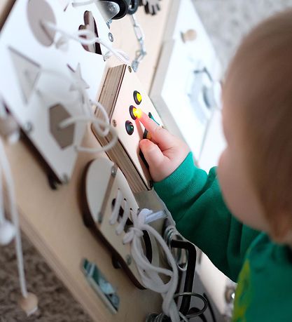 Woobiboo Le Woobiboard est une planche d'activités qui allie apprentissage et jeu. Il est conçu pour éveiller la curiosité de l'enfant et renforcer par le jeu un certain nombre de compétences. Le Woobiboard renforce la motricité et la pensée logique ainsi que l'indépendance, la patience et les capacités psychomotrices de l'enfant. Le Woobiboard contient les activités suivantes :