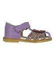 발가락 부분에 반짝이는 보라색 가죽 소재의 아름다운 Arauto RAP 샌들. 발가락 부분에는 예쁜 하트가 있습니다.
