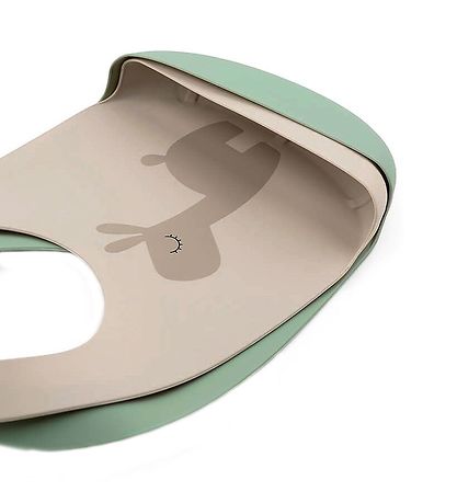 Done by deer 턱받이는 맛있는 실리콘 소재로 만들어졌으며 목 부분이 밀착되어 길이를 조절할 수 있습니다. 바닥에는 음식 부스러기를 모으는 폐기물 주머니가 있습니다.