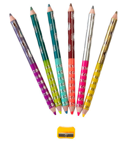 Eeboo 는 양면이어서 실제로 12가지 색상이 있는데, 6가지가 야광이고 6가지가 금속성이며, 스마트 연필깎이 포함되어 있습니다.