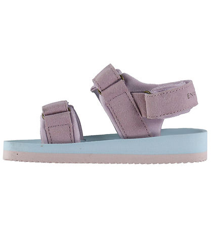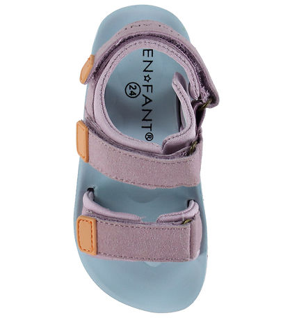보라색과 하늘색의 아름다운 En Fant (앙팡) 샌들 보라색 모조 스웨이드와 주황색 디테일이 특징입니다.