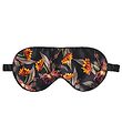 보라색의 아름다운 Fan Palm 수면 마스크. 회색, 주황색, 녹색, 보라색 색조의 꽃이 그려져 있습니다. 가장자리 전체에 흰색 줄무늬가 있습니다.