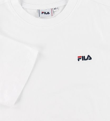 왼쪽 가슴에 고전적인 Fila (휠라) 로고가 수놓아진 흰색 스마트 Fila (휠라) 티셔츠 입니다.