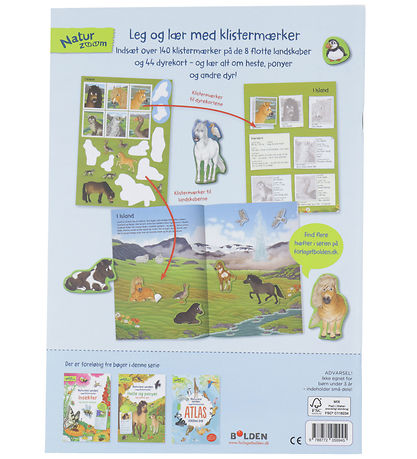 Forlaget Bolden 액티비티 북에는 아름다운 풍경 8장과 풍경에 붙일 수 있는 동물 스티커 140장, 그리고 동물 정보 카드 44장이 8페이지에 담겨 있습니다. 또한, 동물과 그들이 사는 곳에 대한 정보도 가득 담겨 있습니다. 액티비티 북은 제본되어 있습니다.
