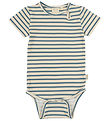 보디수트는 짧은 소매와 좁은 리브 가장자리를 특징으로 하며, 소매와 목 부분을 따라 장식적인 물결 모양 마감이 있습니다. 보디수트는 왼쪽 어깨 위에 진주조개 단추 두 개가 달려 있고, 다리 사이에는 단추가 달려 있습니다.