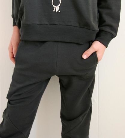Gro 스웨트팬츠는 넓은 탄력성 리브 허리띠와 개구부에 넓은 리브 가장자리를 갖추고 있습니다. 앞면에는 열린 포켓이 두 개 있으며, 운동복 바지의 안쪽은 부드럽고 솔질된 코튼으로 만들어졌습니다.