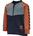 네이비 가슴, 흰색 어깨, 그리고 군청색 소매와 배 부분이 돋보이는 멋진 Hummel (험멜) 가디건 입니다. 소매 아랫부분에는 흰색 각진 디자인이 있고, 왼쪽 가슴에는 흰색 자수 로고가 있습니다.