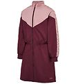 왼쪽 가슴에 흰색 로고와 민들레가 전면 프린트 된, 먼지가 묻은 분홍색의 사랑스러운 Hummel (험멜) 원피스.