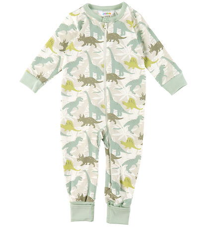 아름다운 녹색 톤의 공룡 프린트가 전면에 들어간 멋진 파란색 Joha (요하) 잠옷 우주복 입니다.
