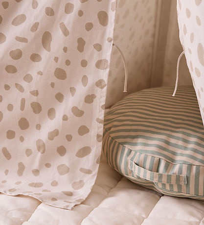 크림색 흰색 줄무늬와 베이지색 점이 있는 귀여운 Kids Concept (키즈컨셉) 놀이 텐트.