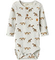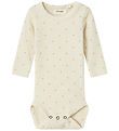 Lil' Atelier (릴 아뜰리에) 바디수트는 넓은 가장자리와 긴 소매를 특징으로 합니다. 목과 다리 부분에는 좁은 끈이 달린 좁은 리브 가장자리가 있으며, 바디수트는 왼쪽 어깨와 다리 사이에서 실용적인 프레스 스터드로 열 수 있습니다. 보디수트는 부드럽고 신축성 있는 코튼 소재로 만들어졌습니다.